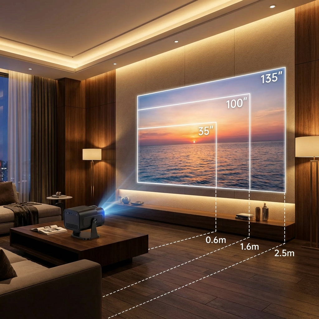 Genießen Sie eine beeindruckende 135-Zoll-Leinwand – selbst in kleinen Räumen.