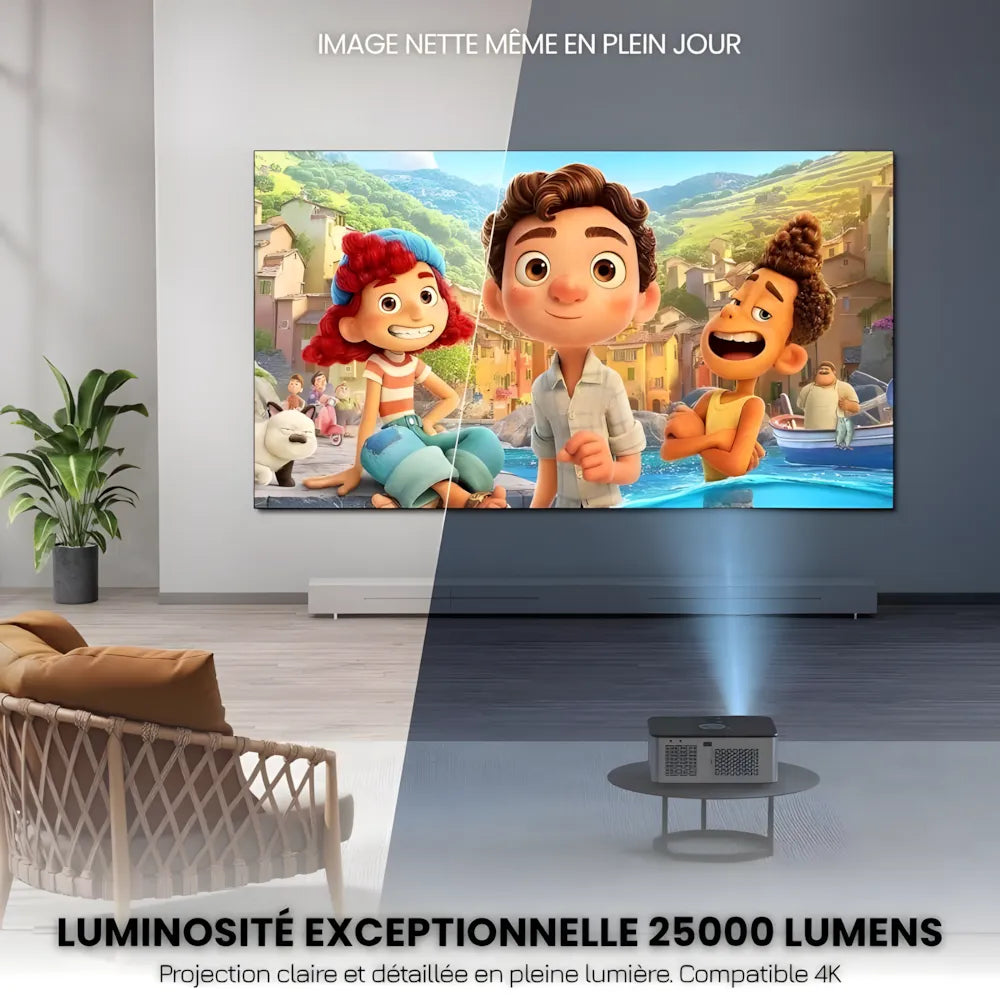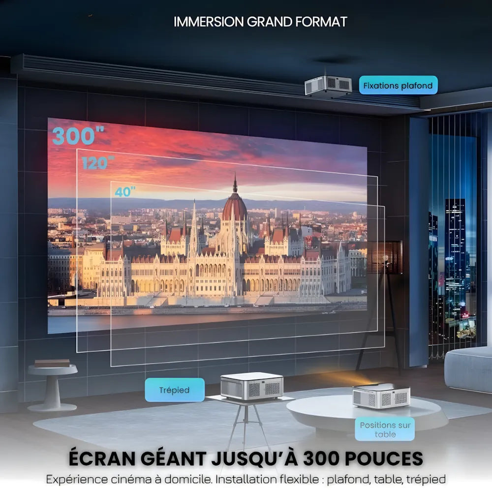 Verwandeln Sie Wände, Decken oder jede beliebige Ecke mit unvergleichlicher Leichtigkeit in eine Leinwand für Filmabende, Open-Air-Vorführungen oder Präsentationen.